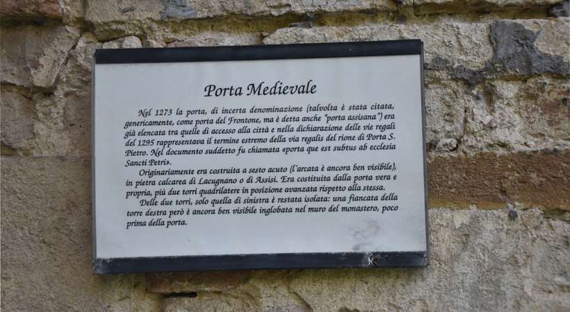 La porta, rivolta verso sud, fu costruita nel 1250 nella cinta medievale perugina ed era attraversata dalla via regale e papale.