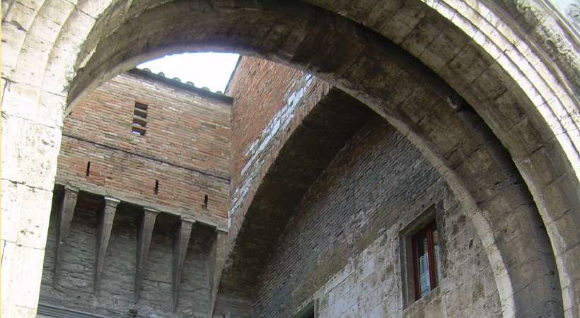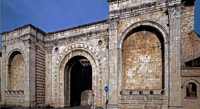 Porta San Pietro è un monumento storico del XV secolo dotata di mure imponenti e offre una visione impressionante dell’abilità architettonica del passato. La facciata esterna è stata realizzata in travertino secondo un disegno rinascimentale di ispirazione Albertiana; essa rievoca la composizione architettonica dell’Arco Etrusco negli elementi decorativi e nella struttura, come fare un salto nel passato.